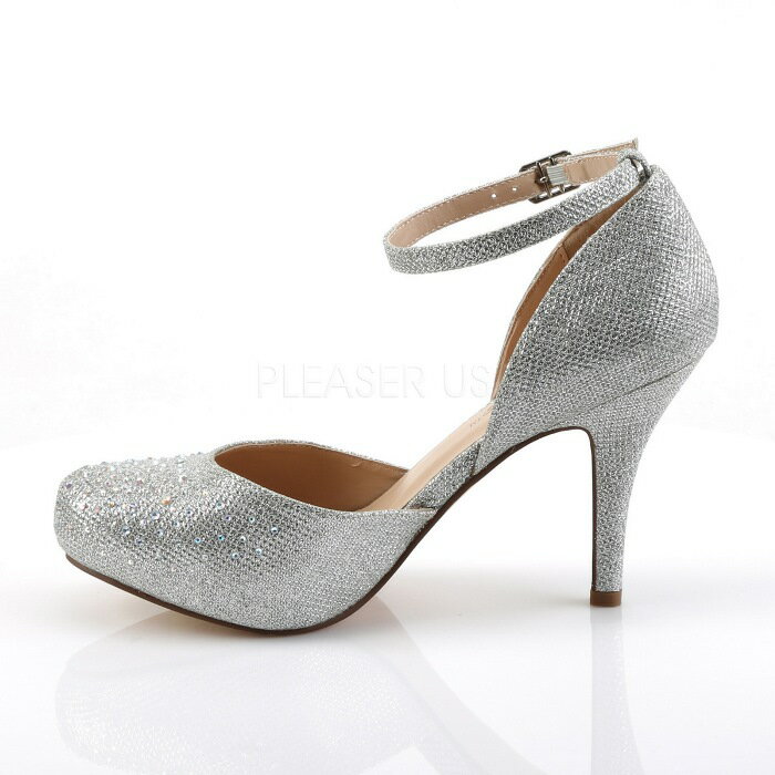 Pleaser プリーザー キャバ パンプス ローヒール キャバ ヒール低め レディース メンズ 9cm ヒール 銀色 シルバー グリッター サイドオープン ストラップ パンプス 大きいサイズ あり キラキラ 23cm 24cm 25cm 26cm 27cm 28cm 女性 男性 用 COVET-03 COVET03/SGFA 取寄